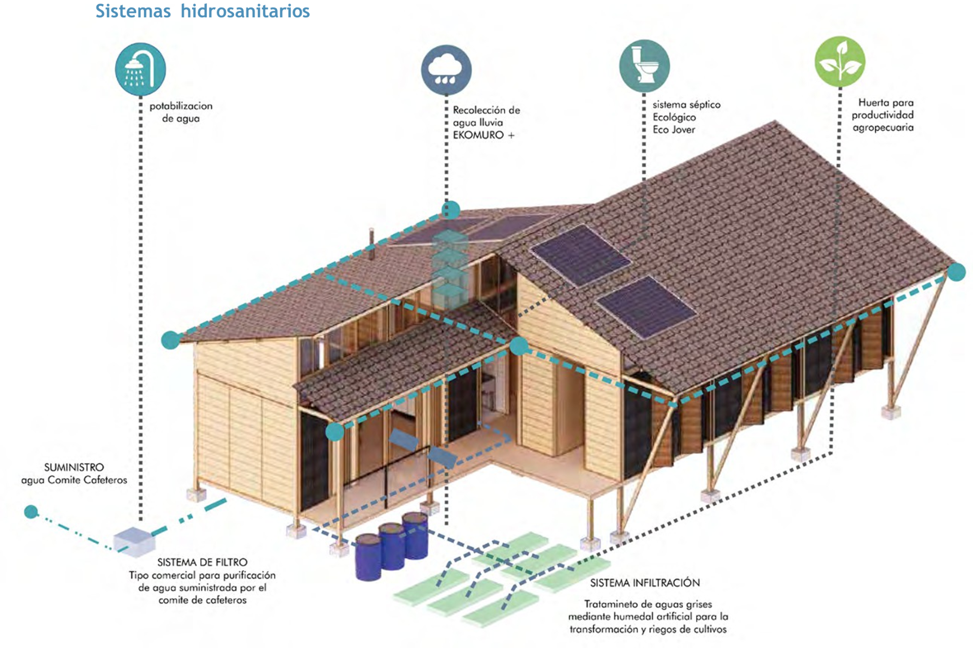 este proyecto pretende servir de puente para el reencuentro familiar y mostrar que la modernidad y tradición se pueden conjugar para construir un hábitat saludable, confortable y productivo que interese a sus moradores en establecer relaciones amigables y sostenibles con el medio ambiente, la familia y las instituciones legales, usando un diseño practico y funcional sin abusar de la forma para construir con materiales de producción industrial, livianos, duraderos y evitando la destrucción de bosques nativos, guaduales u otras especies maderables próximas a su extinción.